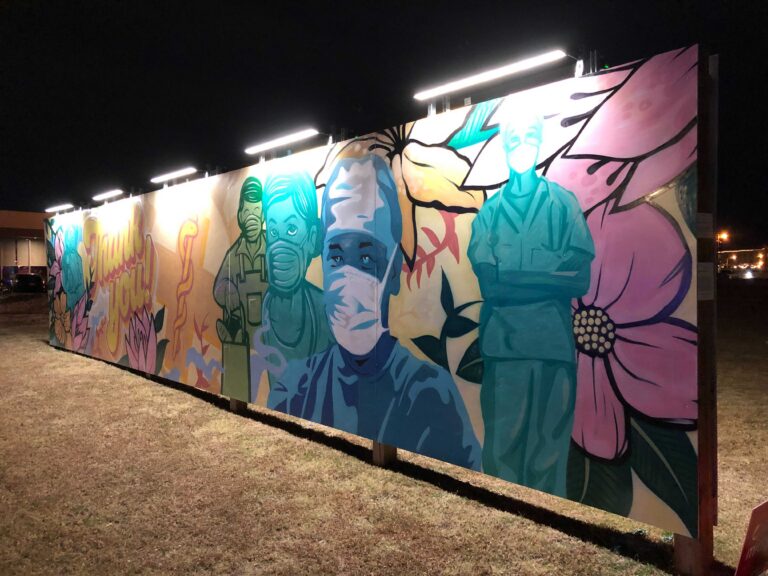 The Midtown Mural Wall was created by the Midtown Association as a public expression of gratitude to the healthcare and essential workers who supported the city throughout the COVID-19 pandemic. Located at NW 9th and Walker Ave, the rotating series of murals continues to explore themes of reemergence, resilience, adaptability, and hope, reflecting both the collective experience of the past and the optimism of moving forward.
